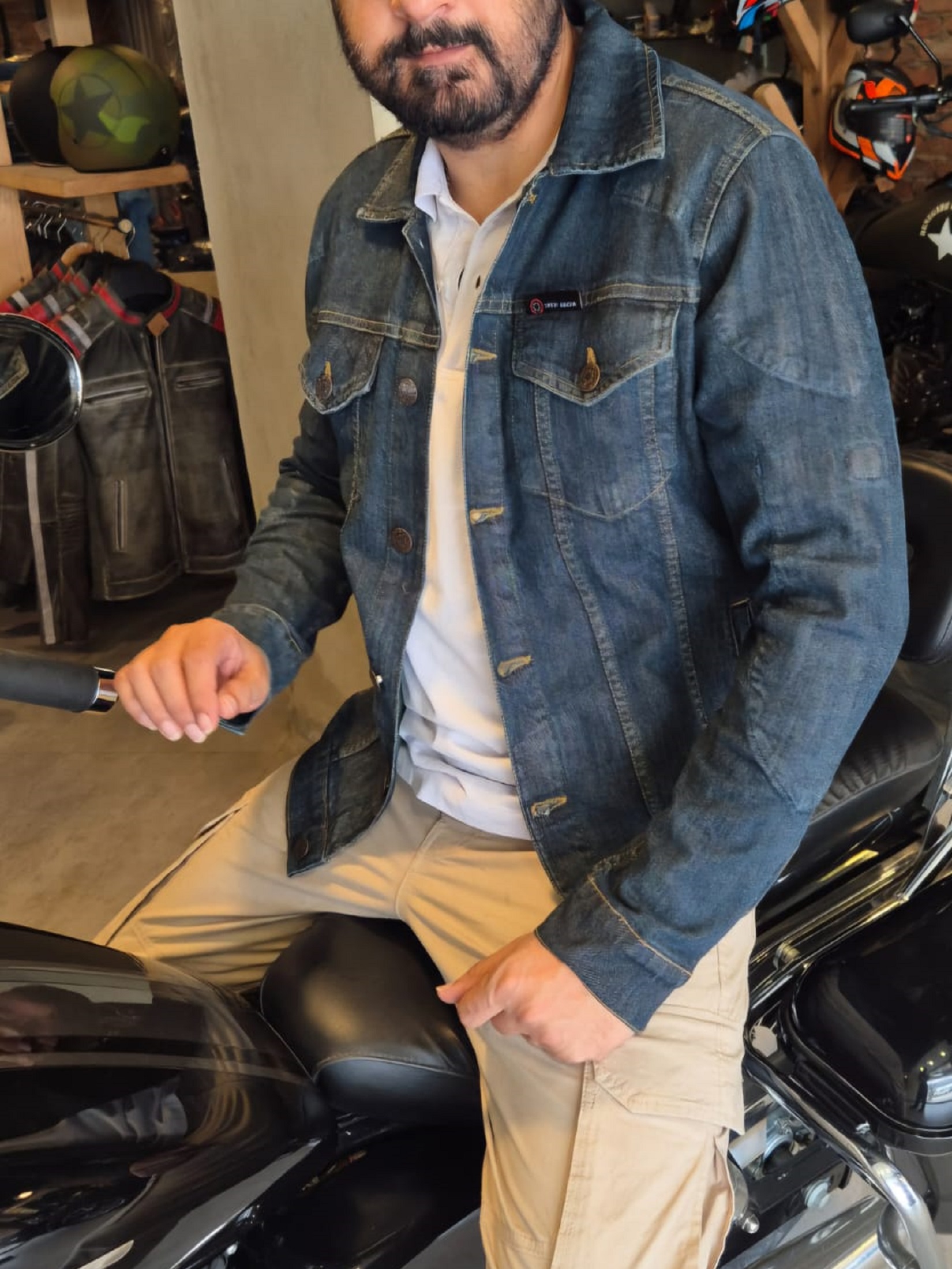 VERSATILE DESIGN: Classic denim jacket featuring a timeless trucker silhouette suitable for both motorcycle riding and casual everyday wear with strategic pocket placement